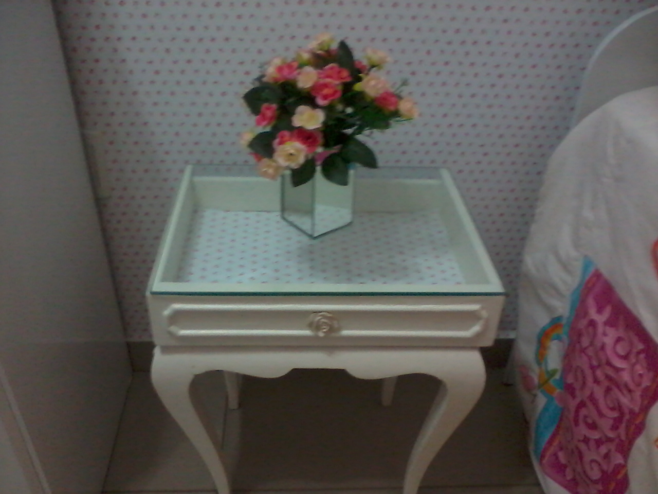 Comprei essas flores e coloquei no quartinho da filhota, Breve esse criado mudo sofrerá mudanças.